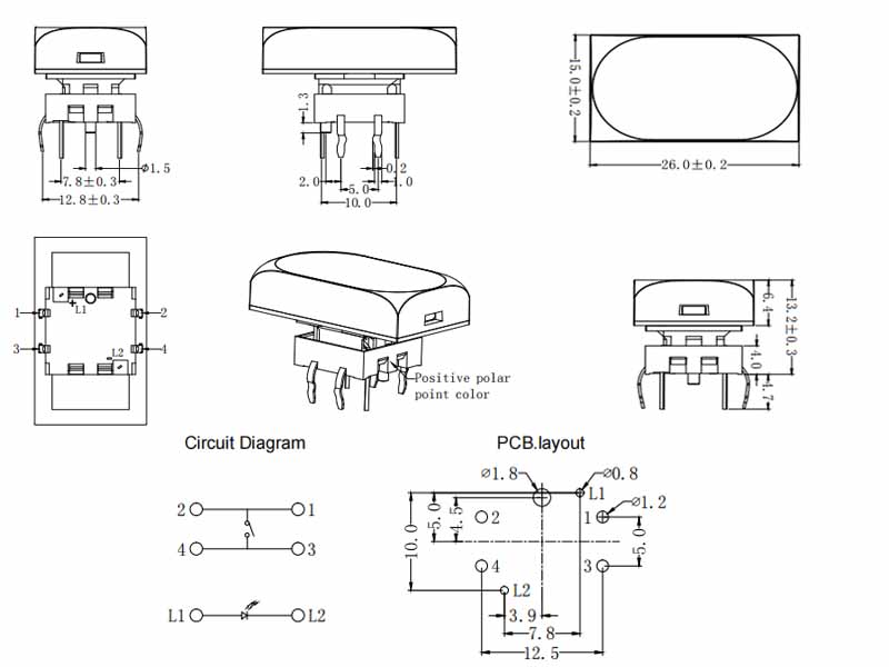 帶燈輕觸開關TS15-4TW-R-S