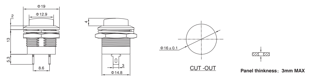 按鍵開關PB系列,功能有帶鎖LOCK和復位常開,開孔10~16不等,常于設備儀器,家電產品等
